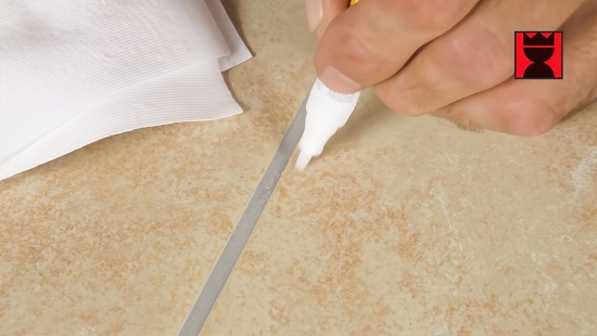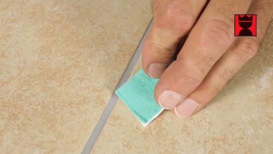 Miután a tömítőanyag körülbelül 4 órán át szobahőmérsékleten száradt, elvégezheti a végső fényesség beállítását a csiszoló- és polírozó kendővel. A kendő fehér oldalát használja matt felület eléréséhez, a zöld oldalát pedig fényes felület eléréséhez.
