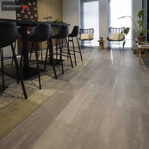 A világosabb szürke árnyalatú Light Grey kőhatású SPC padló magán- és üzleti célra is kiváló választás. Nagy a terhelhetősége, és a 0,55 mm-es kopóréteg biztosítja, hogy a padló sokáig szép maradjon.