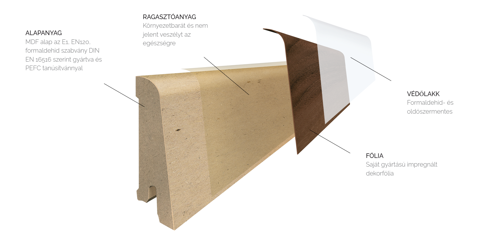 A fenyő természetes anyag, így hajlamos a vetemedésre, repedésre, zsugorodásra. Az MDF stabil és méretpontos: nem csavarodik, nem repedezik, így a szegélyléc hosszú távon is megőrzi a szépségét és szoros illeszkedését a fal mellett.